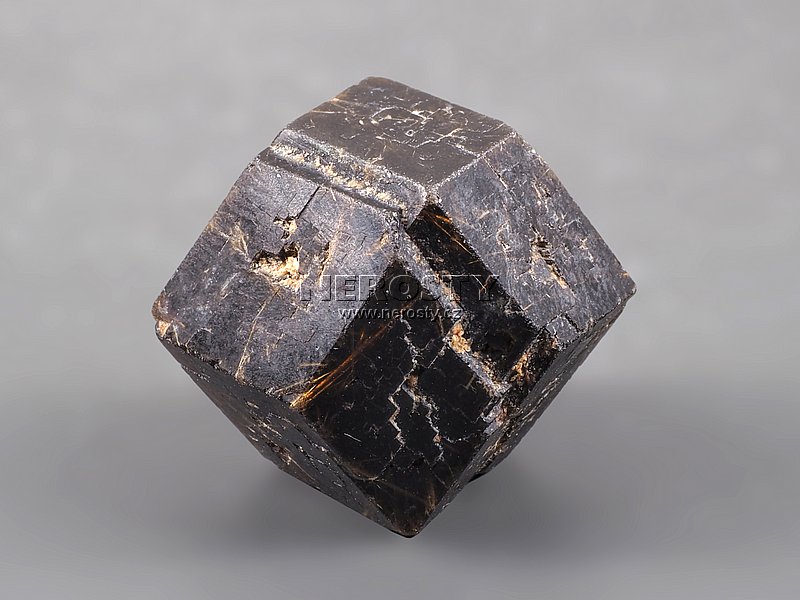 Lesklý a pěkně vyhraněný krystal grosuláru barvy tmavých oliv z Mali.