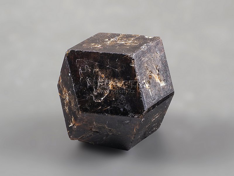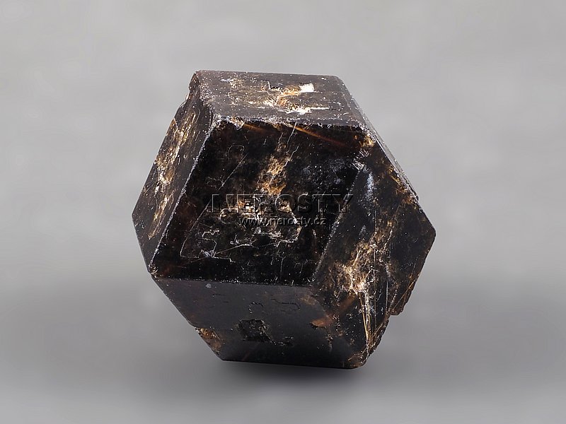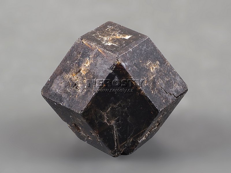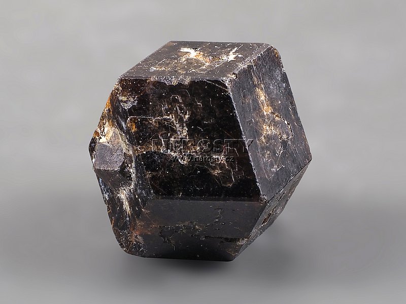 Lesklý a pěkně vyhraněný krystal grosuláru barvy tmavých oliv z Mali.