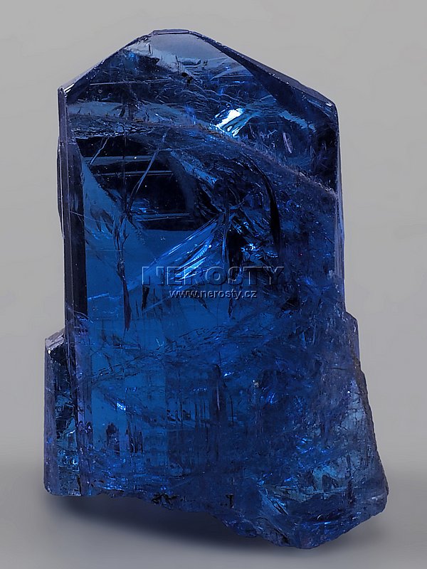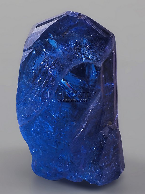 Intenzivně modrý a silně lesklý volně stojící klínovitý krystal tanzanitu.